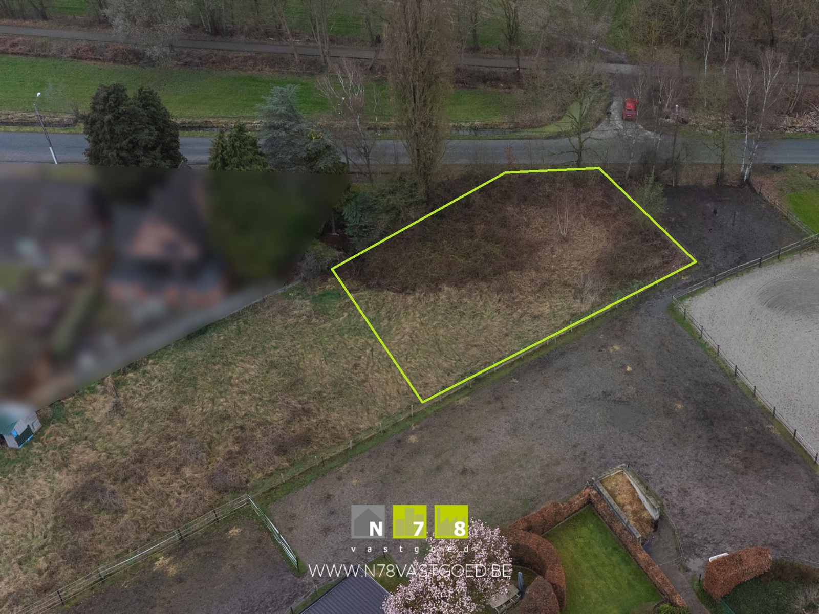 De aanduiding van het perceel op de foto is bij benadering en onder alle voorbehoud. Via onderhavige advertentie op www.n78vastgoed.be vindt u onder de rubriek 'documenten' eveneens een uittreksel van CadGIS met perceelaanduiding, wat een beter beeld kan geven (van de exacte ligging) van het perceel.