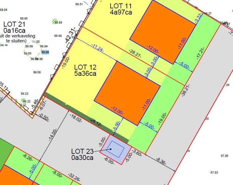 Dit perceel met een oppervlakte van 536 m² heeft een bouwkader van 11 m x 12 m op het gelijkvloers en op het verdiep mag even groot gebouwd worden. Er is de keuze tussen plat dak of zadeldak. Hierdoor kan u een woning bekomen met maar liefst 264 m² plus zolder.