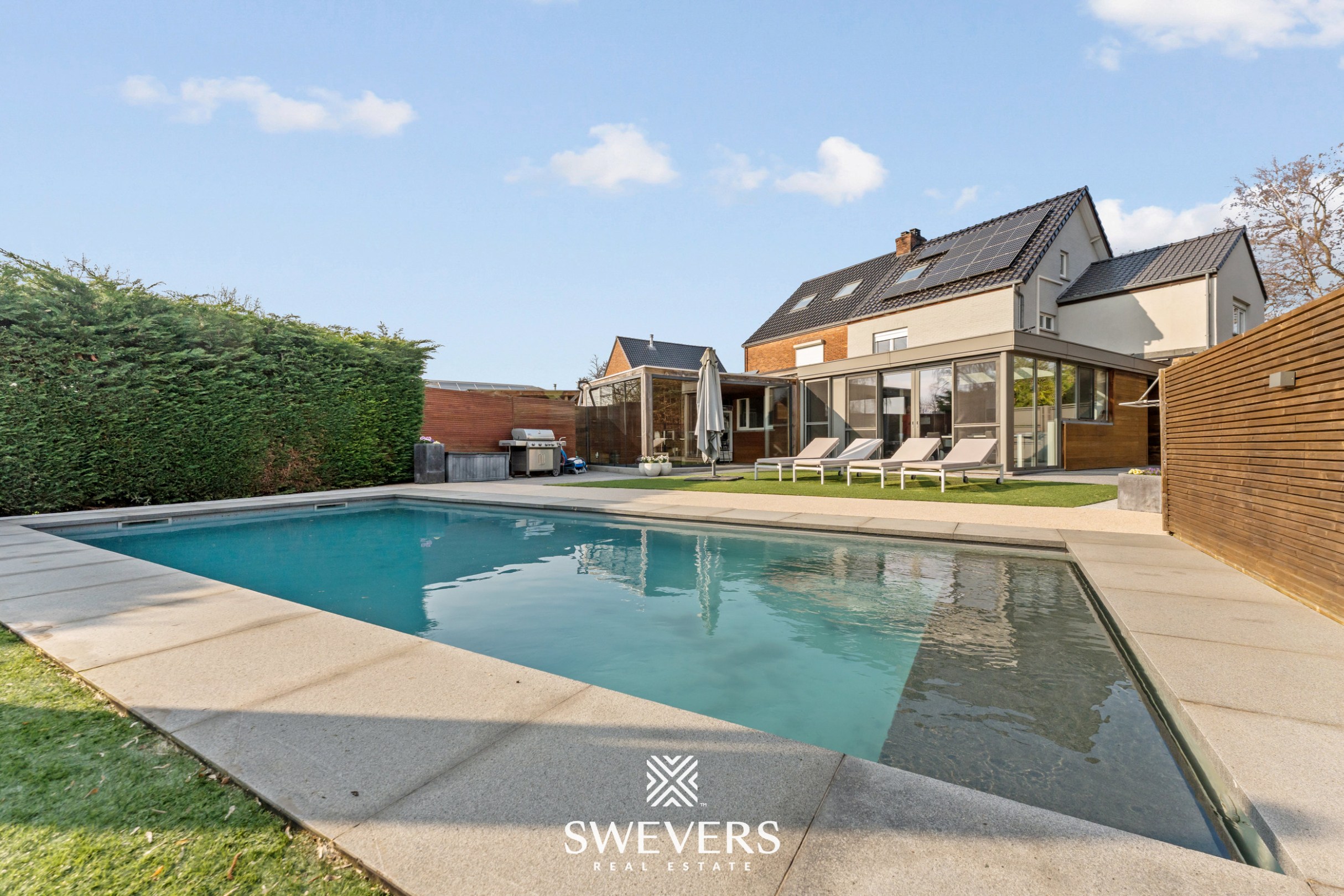 De zuidoostgerichte tuin met zwembad (4 x 10 m) en poolhouse vormt een grote troef. Extra voorzieningen zoals airco, alarmsysteem, camerabewaking en geluidsisolatie zorgen voor bijkomend comfort en veiligheid. Het geheel vormt een instapklare, ruime en energiezuinige woning. Bel ons vandaag nog voor een persoonlijke rondleiding. Wij van Swevers Real Estate helpen je maar al te graag verder. tel. 011 255 155. Bron bewoonbare oppervlakte: EPC-verslag.