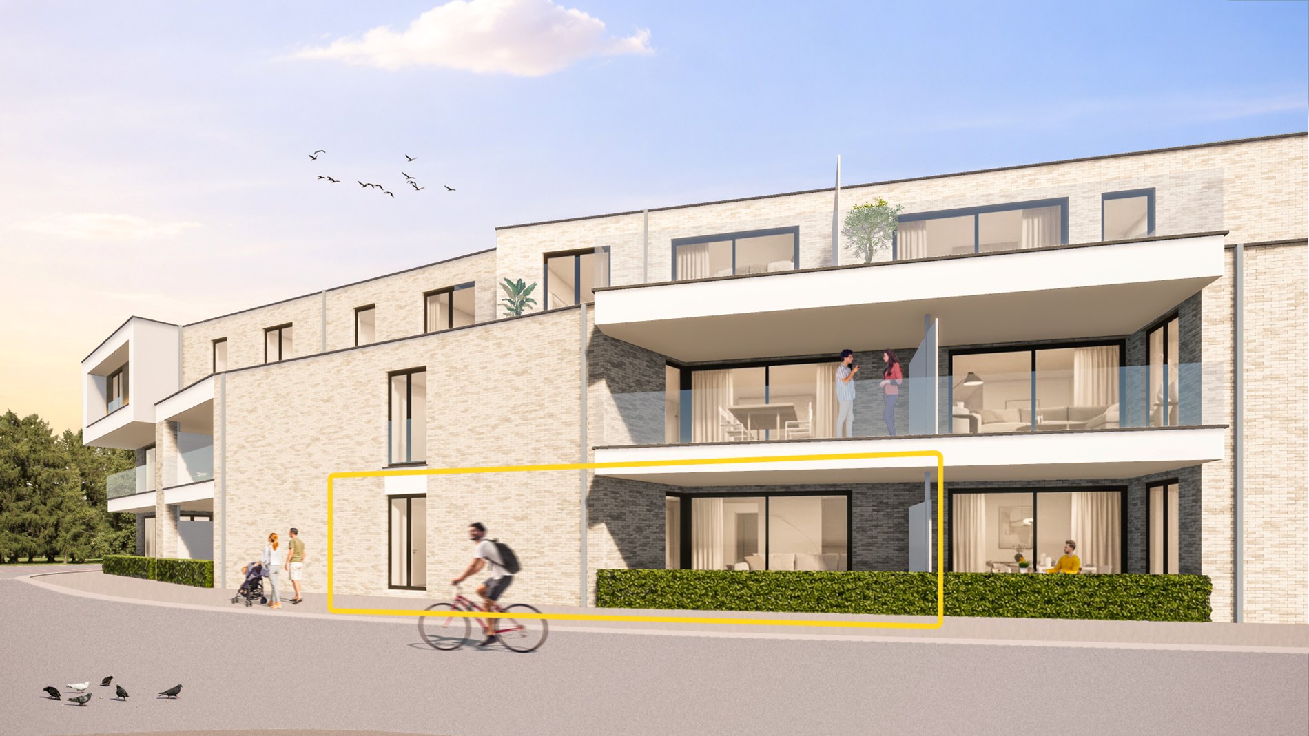 Gelijkvloers appartement (117 m²) met 2 slaapkamers en overdekt terras.