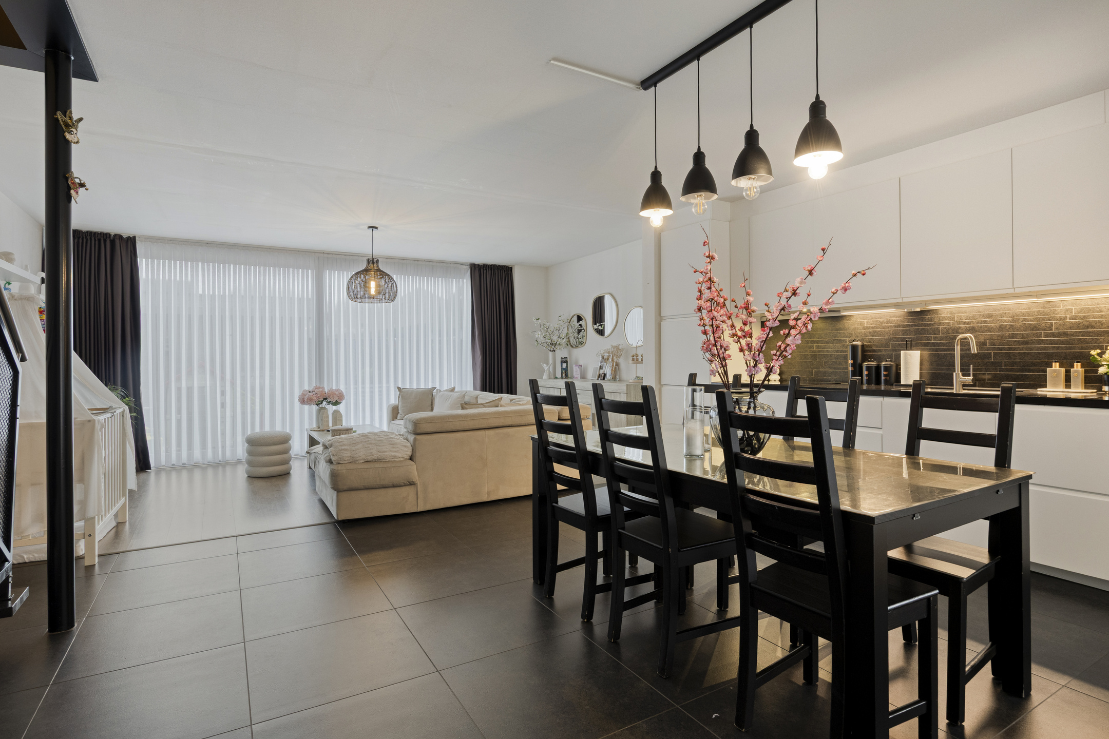 - Gelijkvloers: inkomhal, apart toilet, berging en lichtrijke woonkamer met open keuken