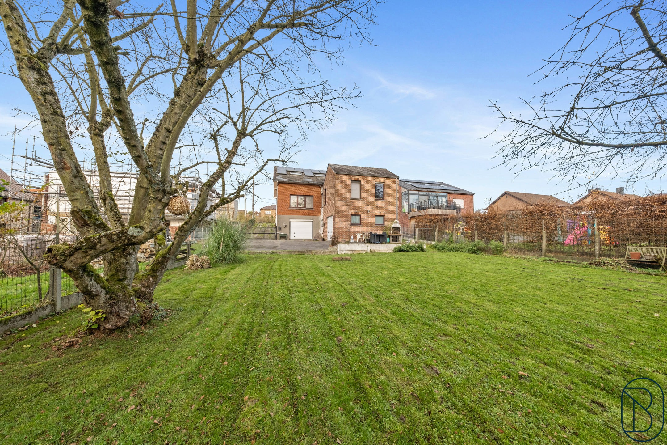 In de kelderverdieping bevinden zich een wasruimte, ruime bergmogelijkheden en twee garages, waarvan één met elektrische poort en één geschikt voor twee wagens. Buiten geniet je van een zonnig terras en een tuin met vrij uitzicht, terwijl zonnepanelen bijdragen aan een energiezuiniger verbruik.