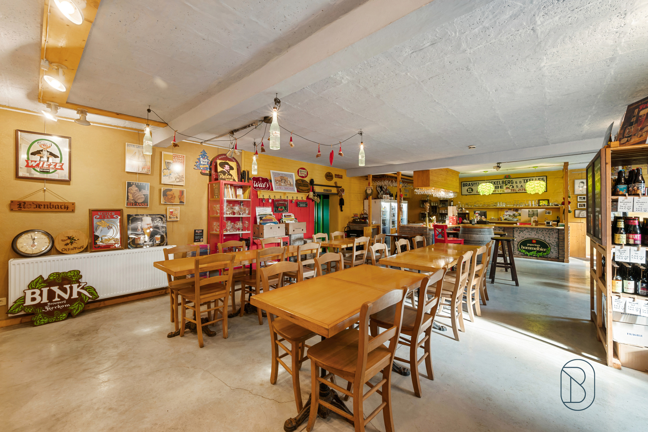 Het commerciële gedeelte bestaat uit een handelsruimte met zaal en bar, een buitenterras en een privatieve parking. Op de verdieping bevindt zich een ruime opslagplaats uitgerust met een goederenlift, wat de uitbating vergemakkelijkt. Het pand verkeert technisch in uitstekende staat: recente gasketel, PVC-ramen met dubbele beglazing, conforme elektriciteit, vernieuwd dak, regenwaterput en waterverzachter.