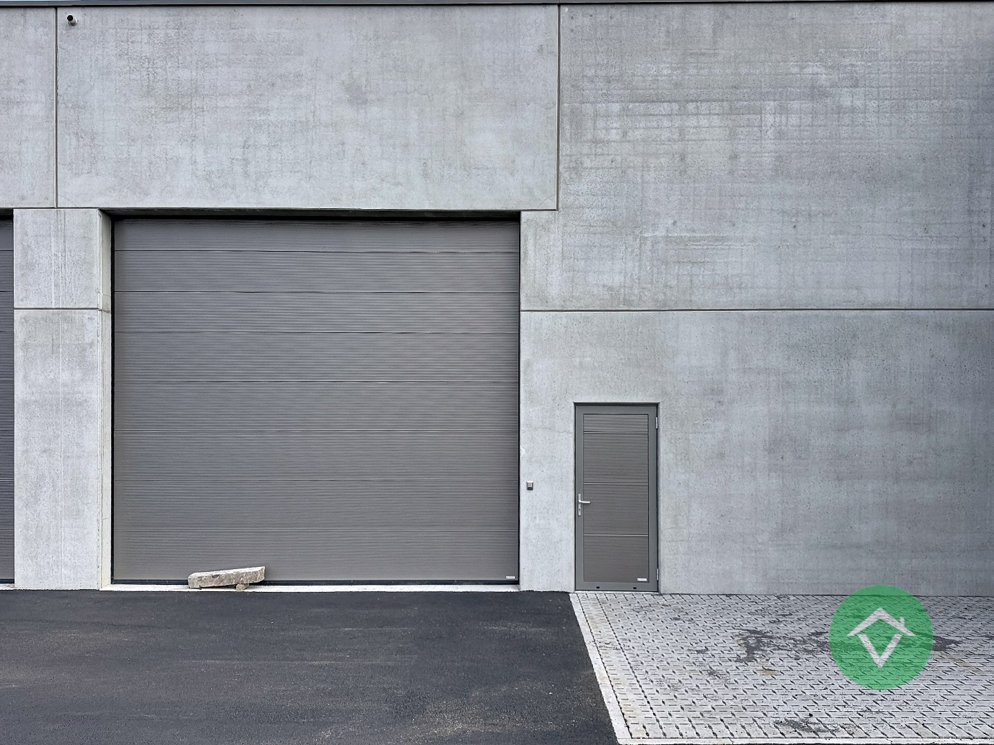 Deze UNIT bestaat uit: een sectionaalpoort van 4,50 m op 4,50 m, een afzonderlijke toegangsdeur, lichtstraat met rookluik, een regenwaterput van 6500 liter en een sceptische put.