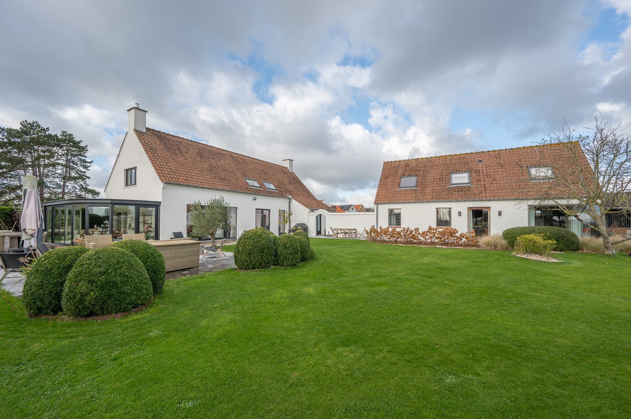 Charmante hoeve gelegen op een terrein van 5.460m2, genietend van vergezichten op de polders van Knokke. Indeling: inkomhal met gastentoilet. Ruime woon- en eetkamer met gashaard met toegang tot het terras en de zuid-west gerichte tuin. Open volledig geïnstalleerde keuken met ontbijteiland genietend van prachtige open zichten. Aan de leefruimte: gezellige veranda (nu bureauruimte). Eerste verdieping: Master bedroom met aansluitend badkamer (bad, lavabo en toilet). 3 slaapkamers. Aparte douchekamer (douche, lavabo en toilet). Inpandige garage voor twee wagens / wasplaats. Aparte atelier: ruime gezellige woonkamer met geïnstalleerde open keuken met eetkamer, genietend van de prachtige zichten naar de polders. Op het verdiep zijn er twee volwaardige slaapkamers met elk hun eigen douchekamer en toilet. Meerdere parkeerplaatsen voor de woning.