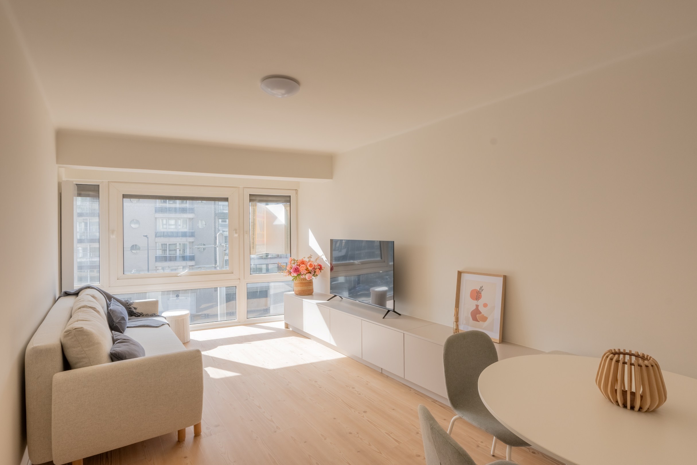 Knap gerenoveerde studio met een sublieme oriëntatie richting het zuiden. Naast de zon kunt u ook genieten van mooie open zichten vanuit de leefruimte.