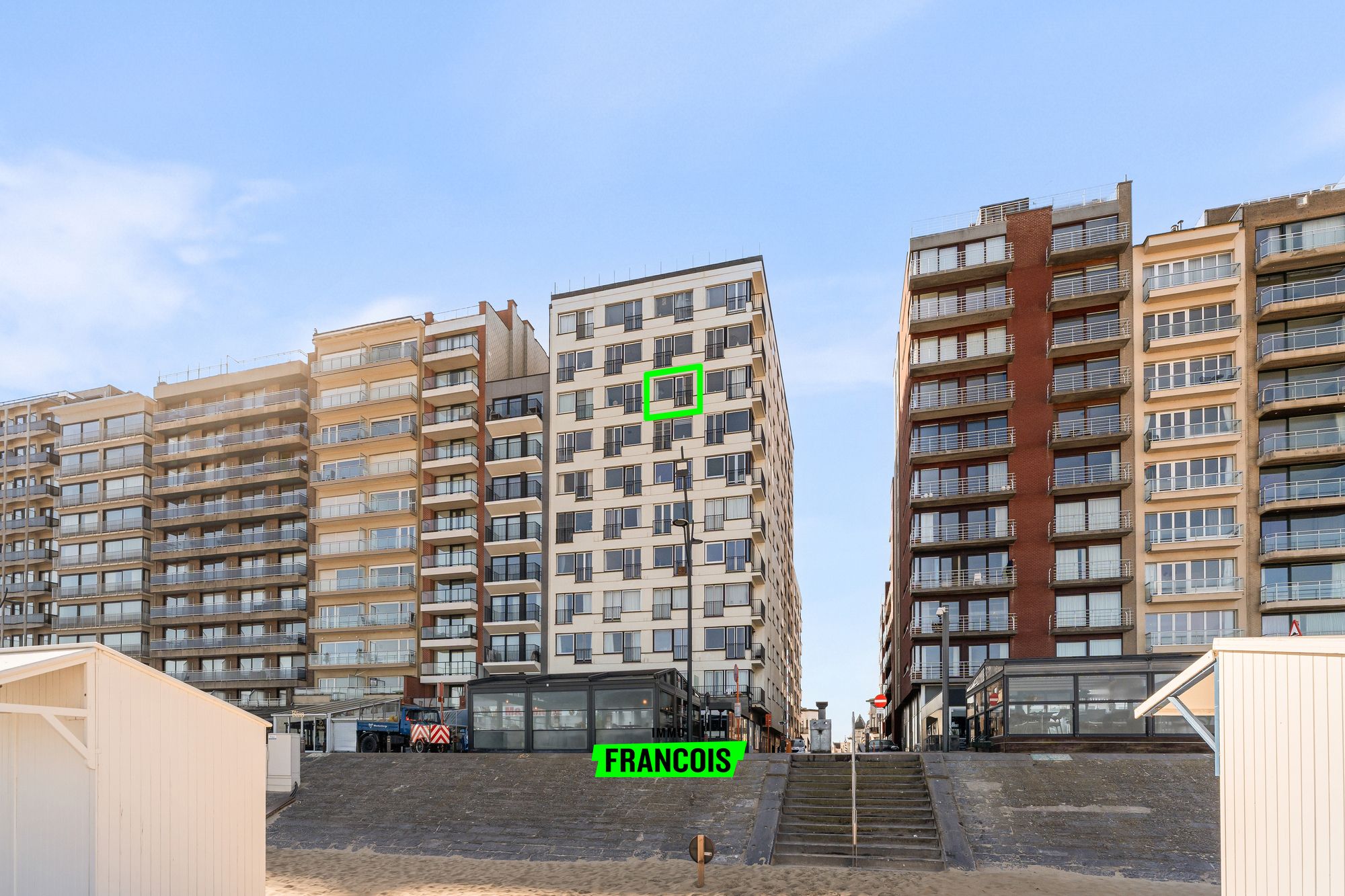 Op de achtste verdieping van een verzorgde residentie, op wandelafstand van zowel het strand als het stadscentrum, bevindt zich deze volledig gerenoveerde studio met prachtig frontaal zeezicht. De ligging combineert rust en bereikbaarheid, met winkels, horeca en openbaar vervoer in de nabije omgeving.
