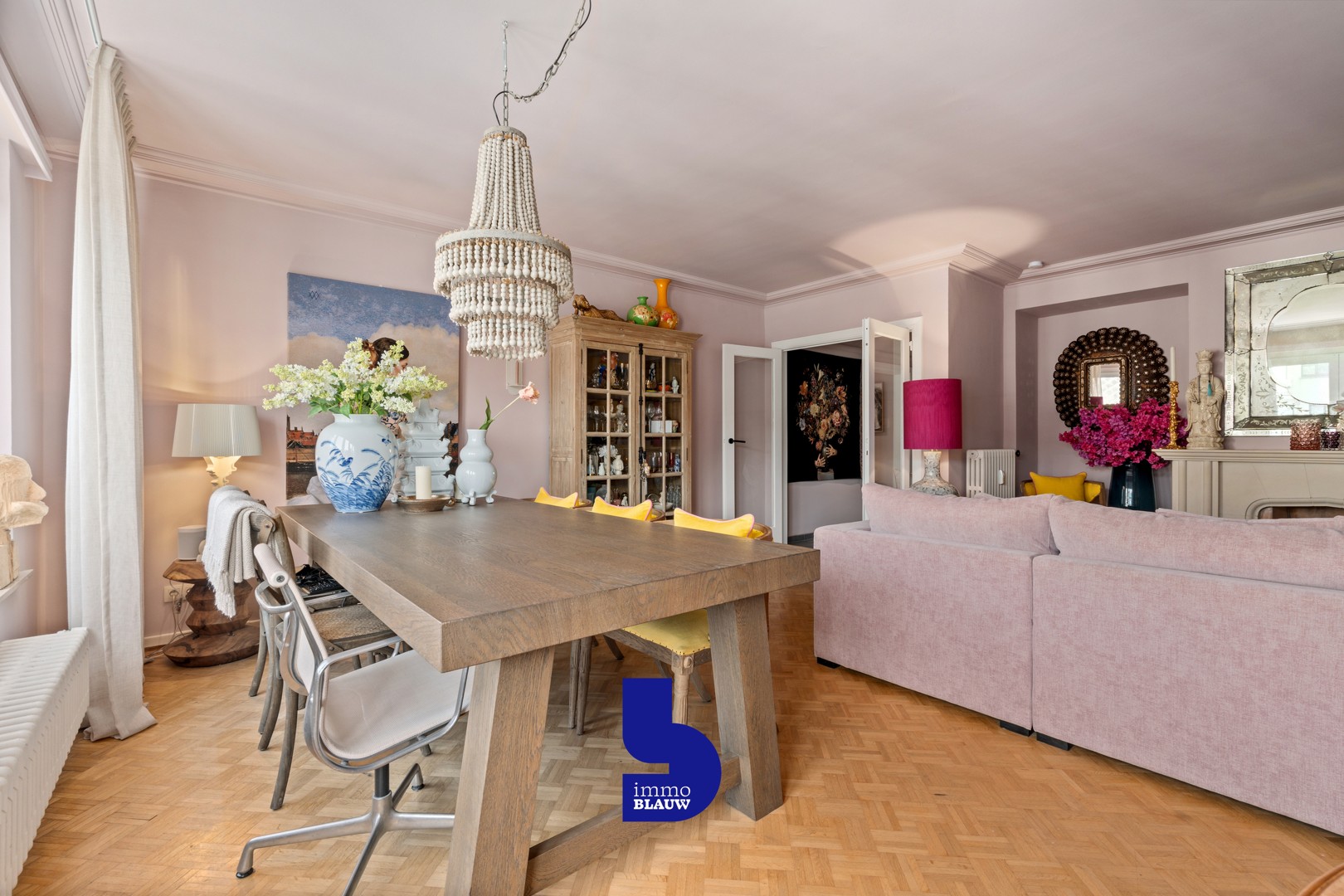 Het appartement werd in 2014 volledig gerenoveerd met behoud van zijn authentieke elementen zoals de prachtige schouw en de warme parketvloer in de woonkamer. De renovatie gebeurde met hoogwaardige materialen, inclusief op maat gemaakte kasten voor extra opbergruimte.