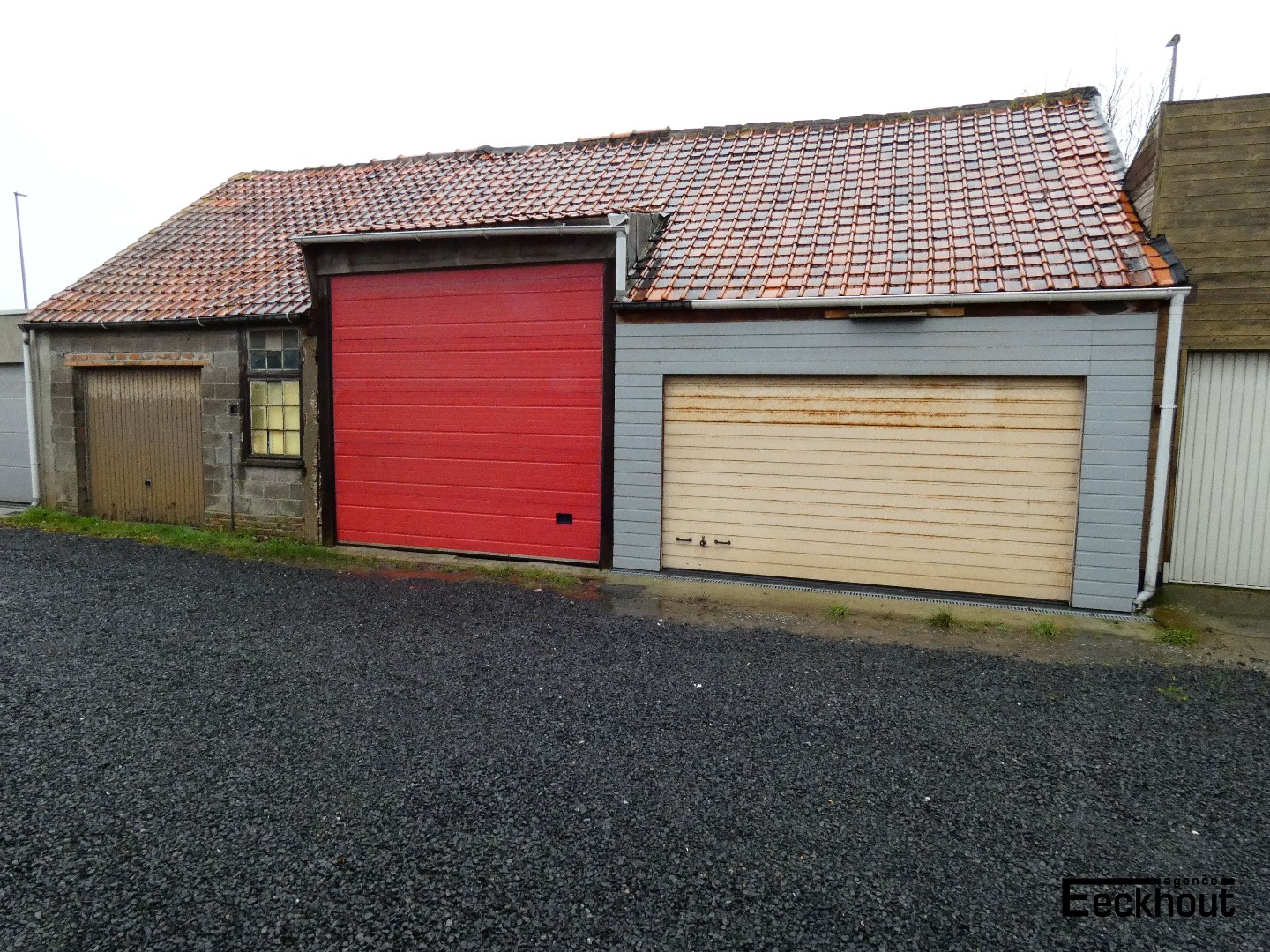 Deze loods is onderverdeeld in 3 afgesloten garageboxen, waarvan de middelste voorzien is van een sectionale poort met afstandsbediening, de linkse en rechtse poorten zijn handmatig te openen. De ruime zolder is toegankelijk via middelste garagebox.