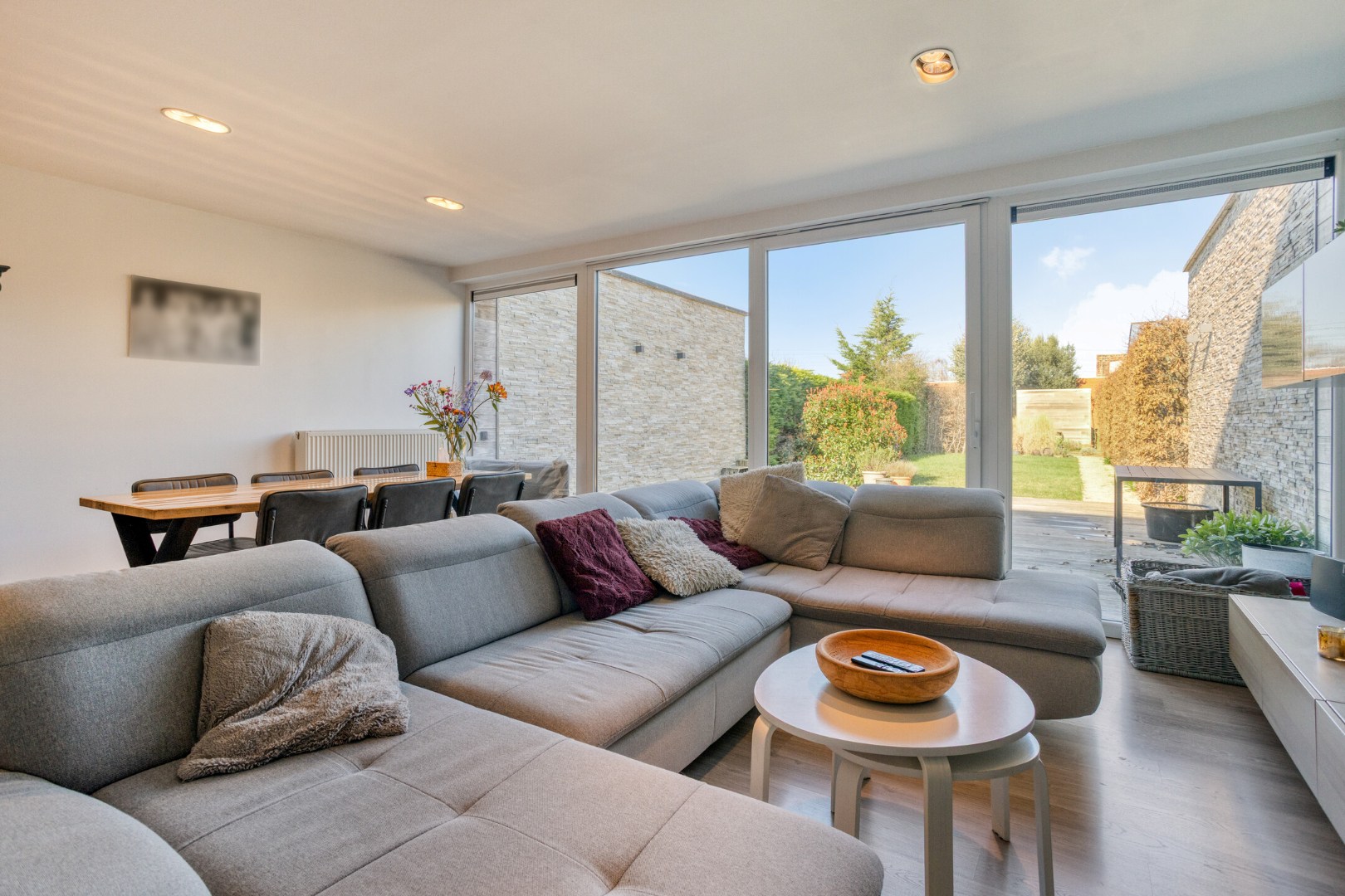 Deze woning werd volledig heropgebouwd in 2010! We komen binnen in de hal met apart gastentoilet. In de leefruimte komt enorm veel licht binnen door het grote schuifraam met zicht op de tuin. De volledig uitgeruste keuken beschikt over een eiland en is open met de leefruimte. Op het gelijkvloers vinden we verder nog de badkamer (met lavabomeubel, ligbad en douche), handige wasplaats en een inpandige garage met elektrische sectionale poort.