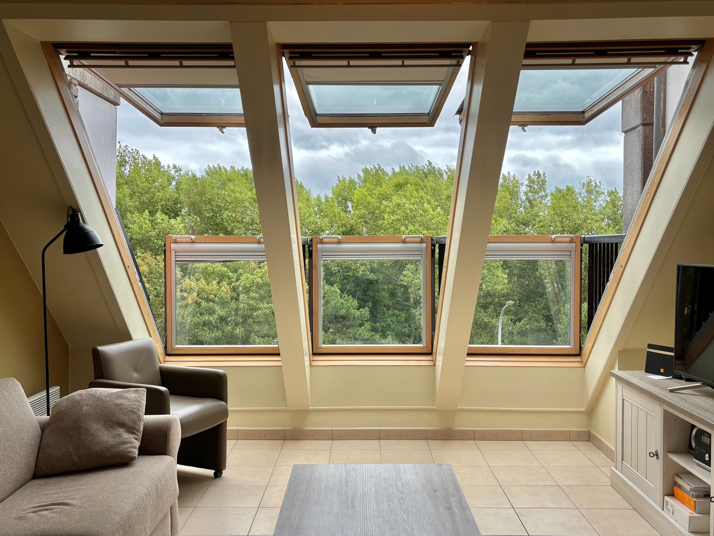 Zonnig appartement met slaapkamer en slaaphoek.