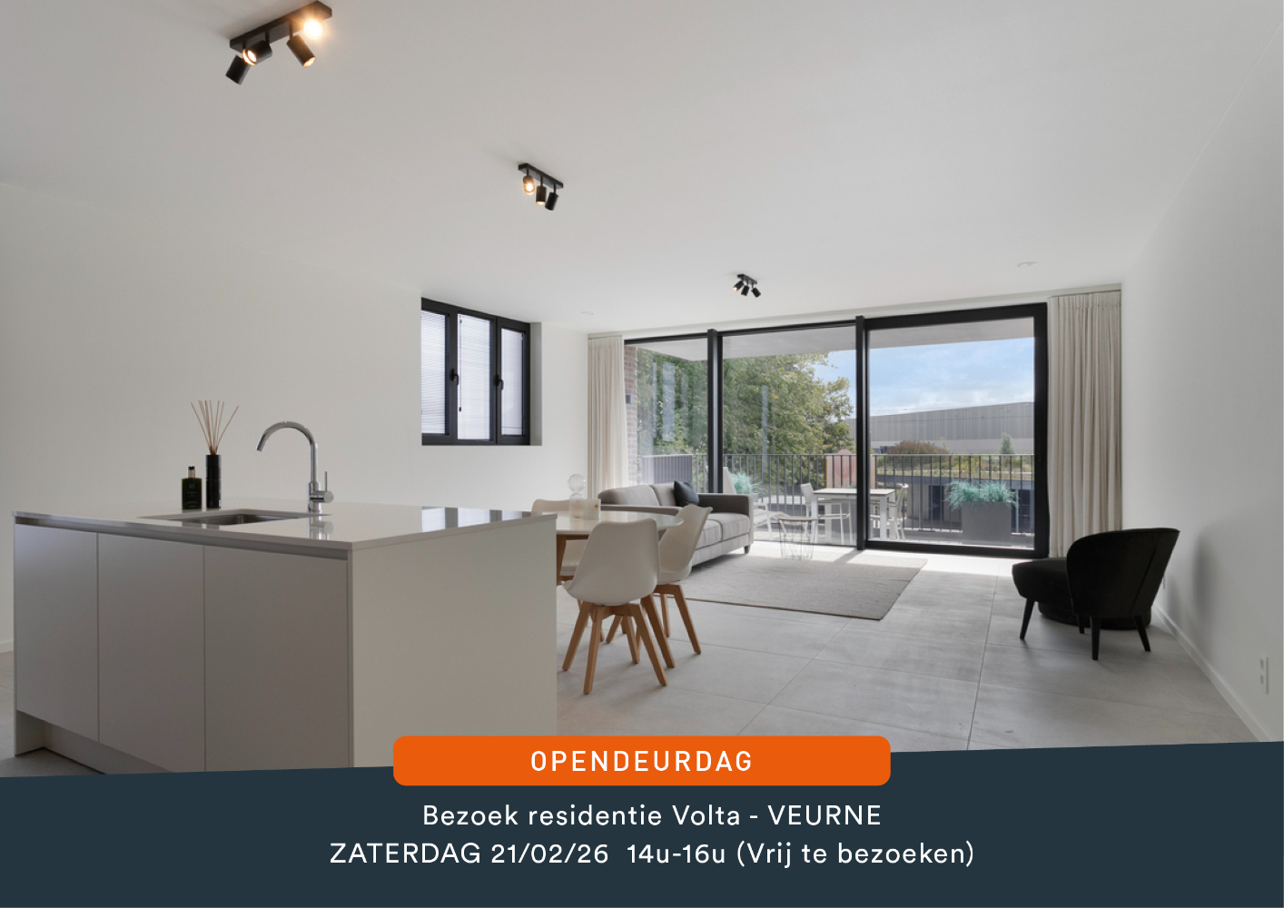 Opendeurdag zaterdag 21/02/26 van 14u tot 16u - Bezoek vrijblijvende de modelappartementen !