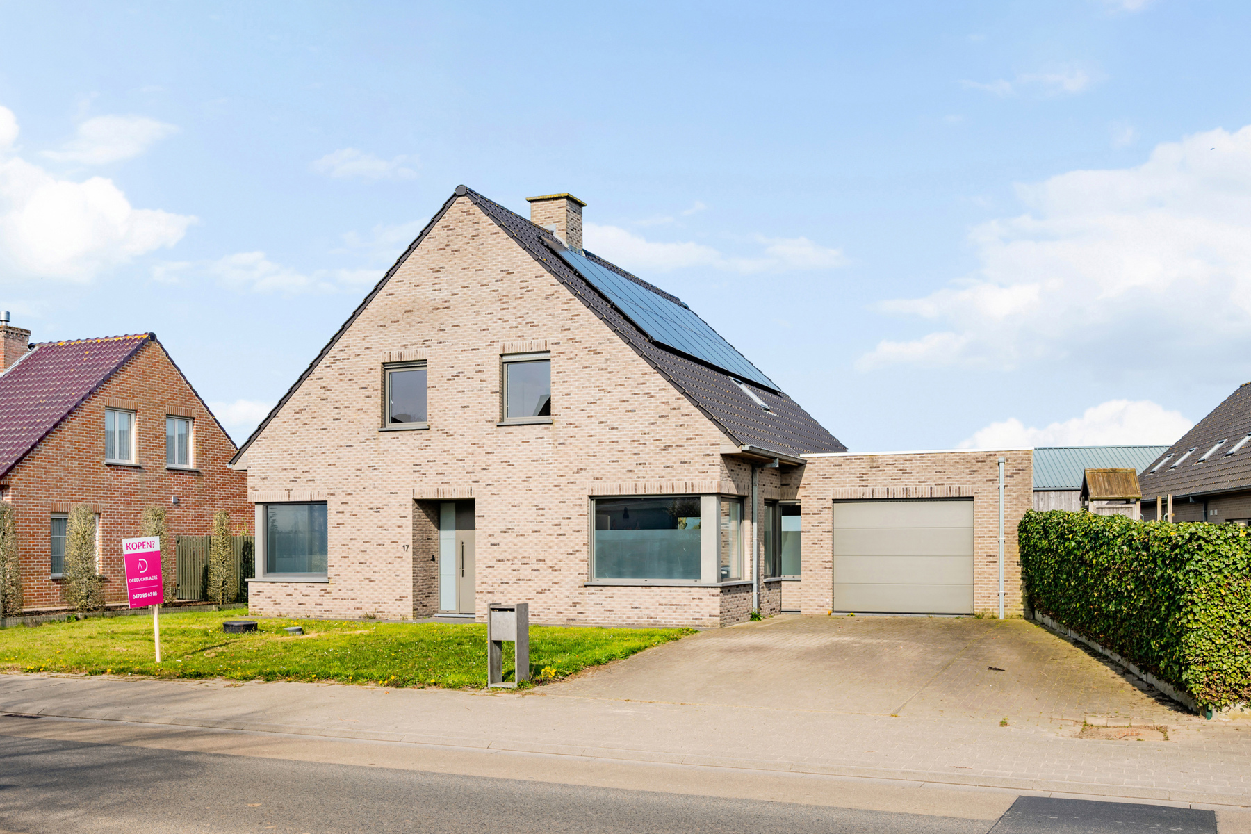 - Gelijkvloerse verdieping: ruime oprit voor meerdere wagens, inkomhal, slaapkamer 1, badkamer 1, apart toilet, slaapkamer 2, lichtrijke leefruimte, geïnstalleerde open keuken, grote berging, grote garage met automatische poort, zonnig terras en een tuin met landelijk verzicht.