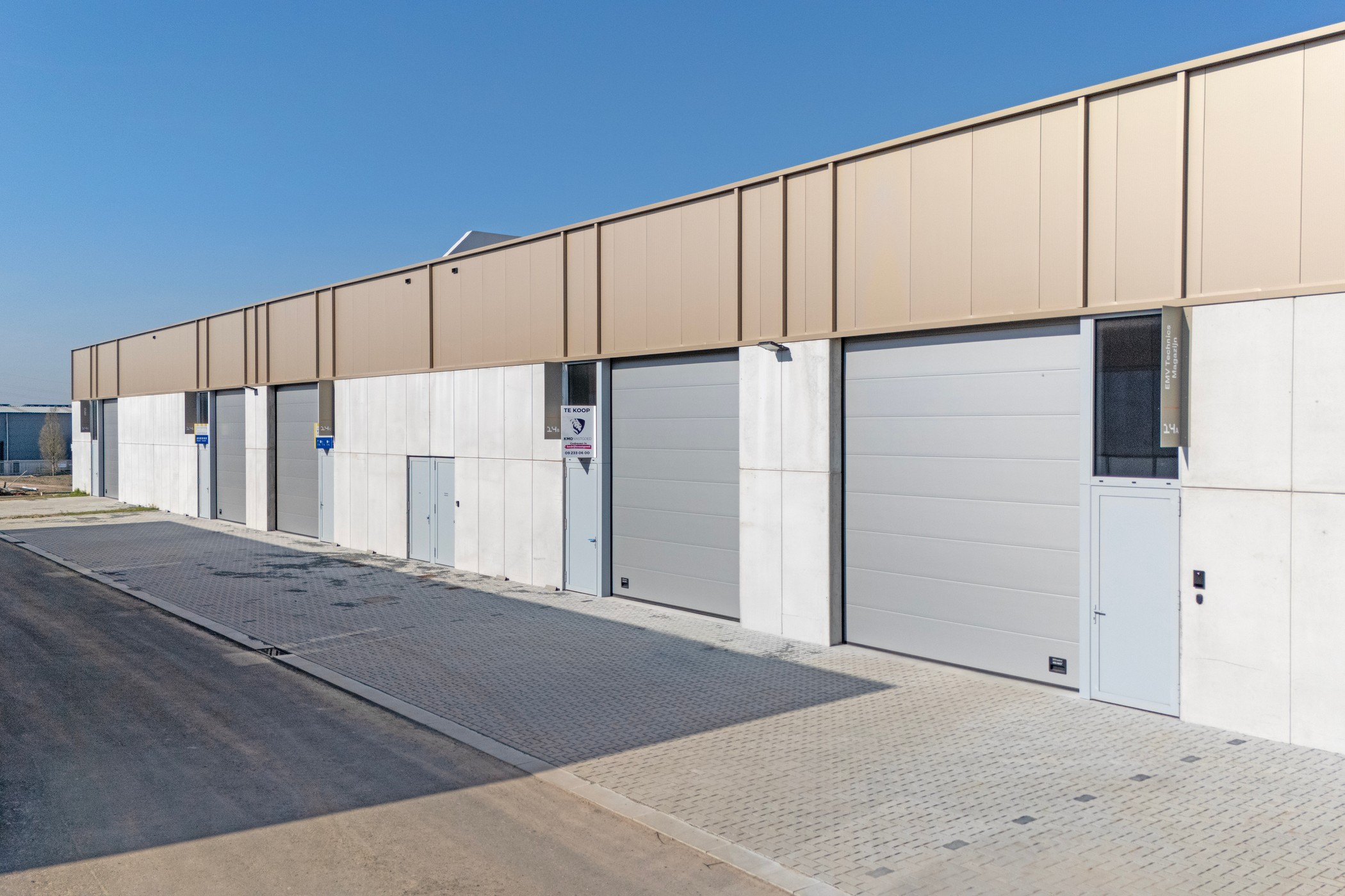 De casco-units zijn duurzaam opgebouwd met een geïsoleerde staalstructuur, betonplint en sandwichpanelen, en bieden een vrije hoogte van ca. 6 meter (mogelijkheid tot mezzanine). Ze zijn uitgerust met een automatische sectionale poort (4 x 4,50 m), aparte inkomdeur, gepolierde betonvloer en lichtstraat met rookluik. Voorzieningen voor zonnepanelen zijn aanwezig.