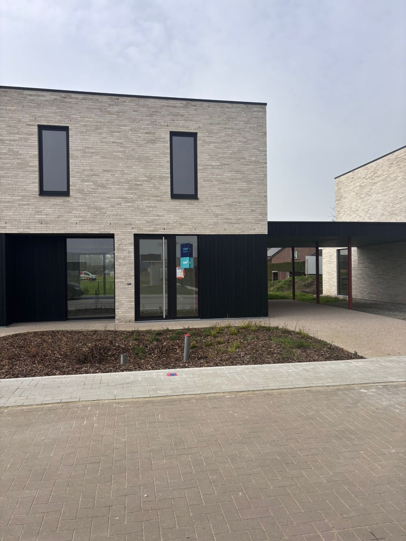 Deze halfopen woning combineert een praktische indeling met veel lichtinval. De leefruimte met open keuken en kookeiland biedt een mooi zicht op de tuin. Buiten geniet je van een aangename buitenruimte en kan je de auto parkeren onder een houten carport.