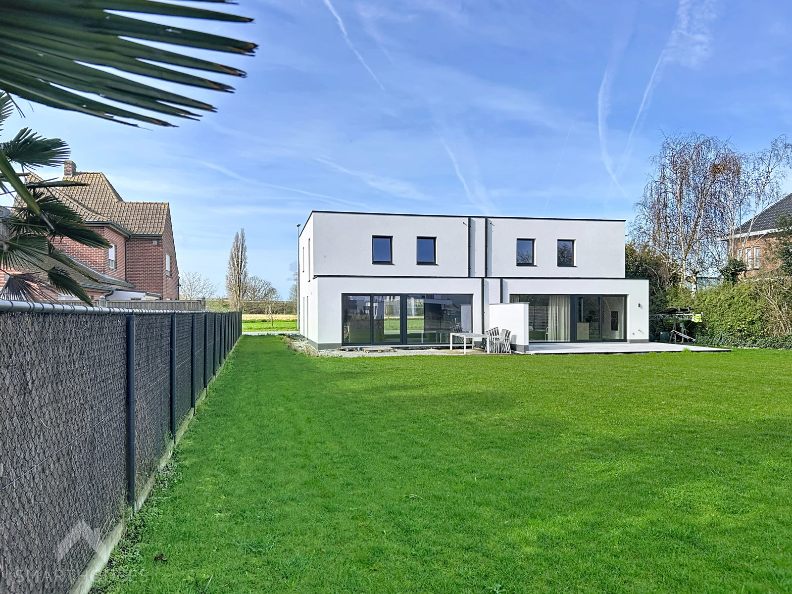 Ontdek deze nieuwbouw woning op een perceel van 550 m², gelegen op een rustige maar tegelijk centrale locatie. Deze woning biedt alle ruimte en comfort die een gezin nodig heeft. Vooraan is er plaats voor 2 parkeerplaatsen, en een mogelijkheid tot carport naast de woning met toegang via zijdeur! Op het gelijkvloers vindt u een inkomhal met gastentoilet, ruime lichtrijke leefruimte met aansluitend de keuken, aanpalende praktische was/bergplaats. Op de eerste verdieping zijn er drie ruime slaapkamers en een kleinere kamer die kan dienen als bureau, doorloopdressing naar badkamer of kinderkamer. De woning wordt wind- en waterdicht verkocht, waardoor u zelf nog uw persoonlijke toets kan toevoegen aan de afwerking. Van zodra er een verkoopovereenkomst is wordt de woning meteen afgewerkt. Om een idee te geven van de mogelijkheden en afwerkingsgraad kan u de naastgelegen modelwoning bezoeken! Kortom: een ruime en moderne gezinswoning met tal van mogelijkheden met mooie grote tuin die al genivelleerd en gezaaid is!