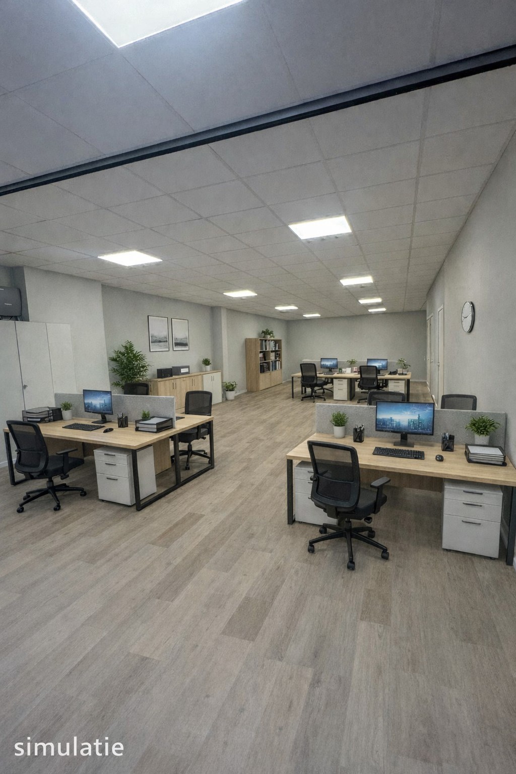 Indeling: ruimte kantoorruimte +/- 100 m², afzonderlijke keuken, toilet