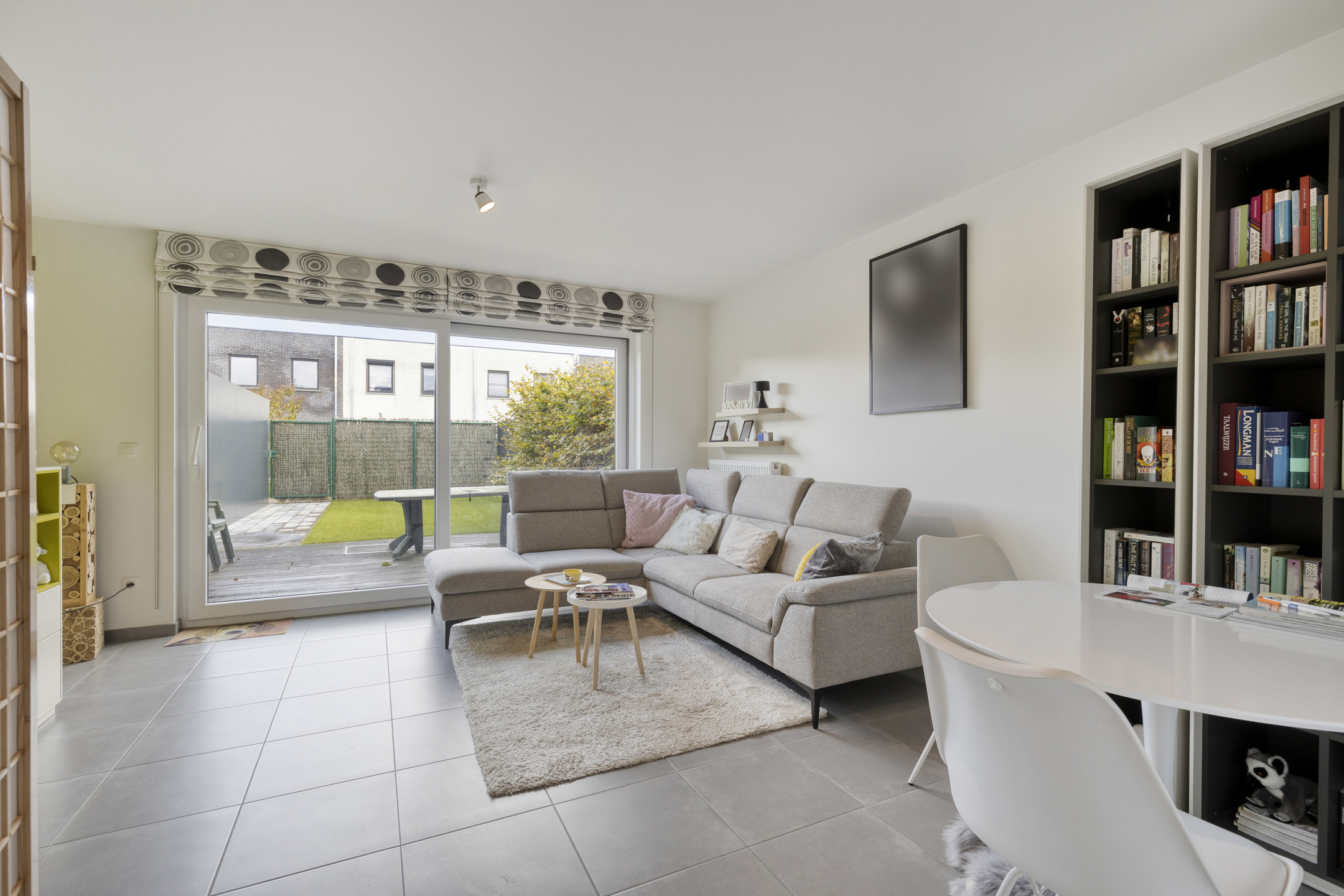 - Gelijkvloers: inkomhal met gastentoilet, gezellige leefruimte met eetplaats en zicht op de zonnige tuin, volledig ingerichte, praktische keuken met aansluitende berging, aangelegde tuin met carport en extra bergruimte