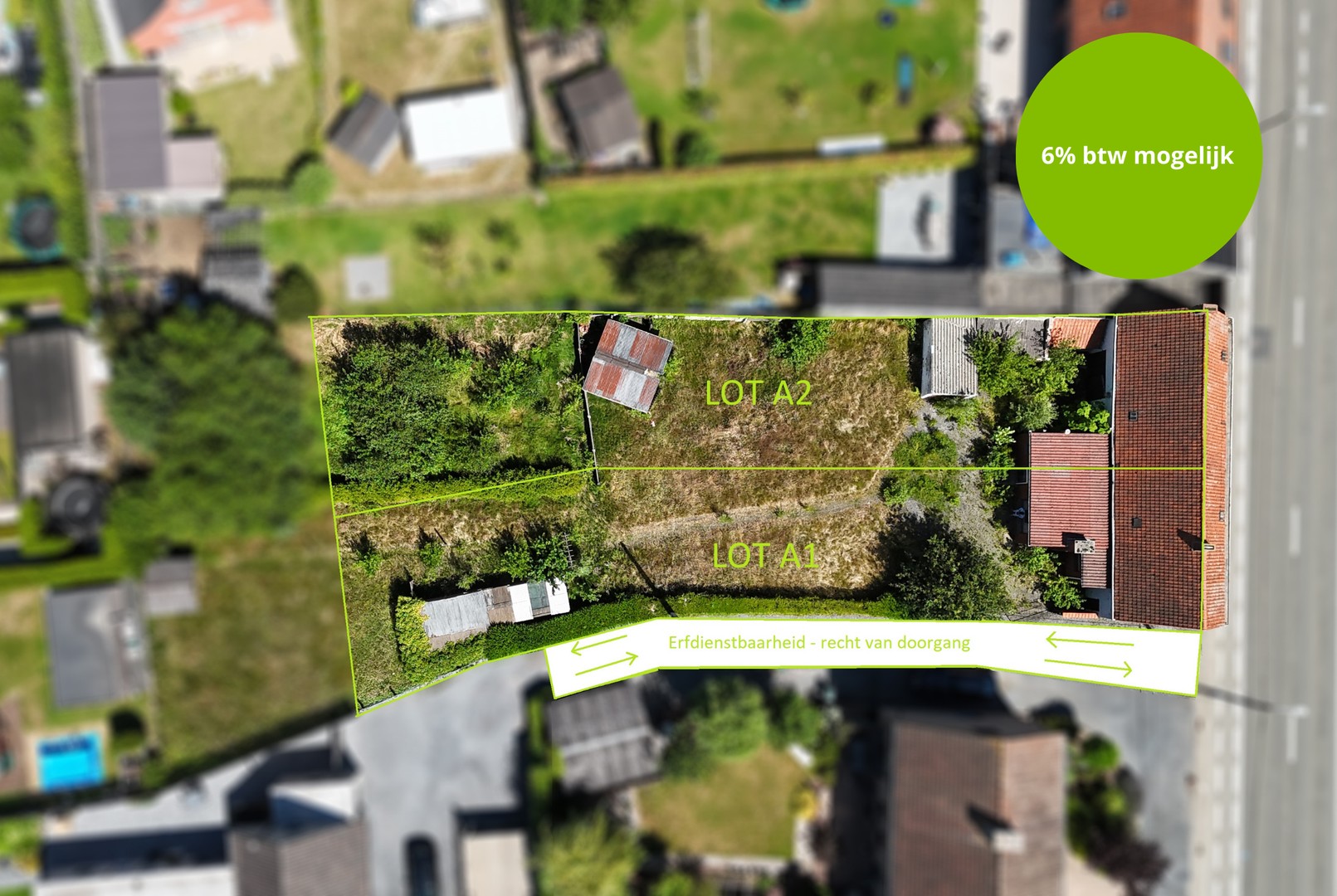 Het terrein is reeds opgesplitst in twee afzonderlijke kavels. Lot B met een oppervlakte van 473m² en lot C met een oppervlakte van 622m².