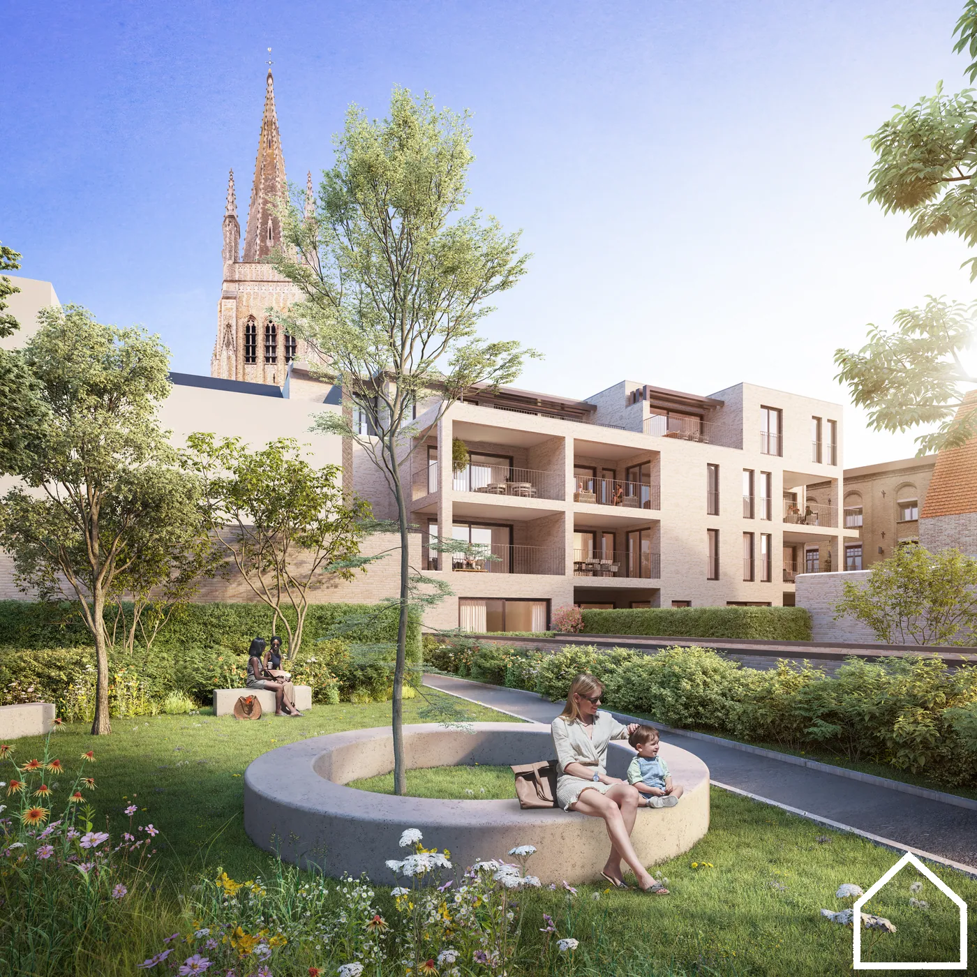 De appartementen omgeven door groen zullen gebouwd worden volgens de huidige energienormen met een tijdloze architectuur. Vloerverwarming aangestuurd door warmtepompen zorgen voor een A-label EPC en maken de appartementen future-proof!