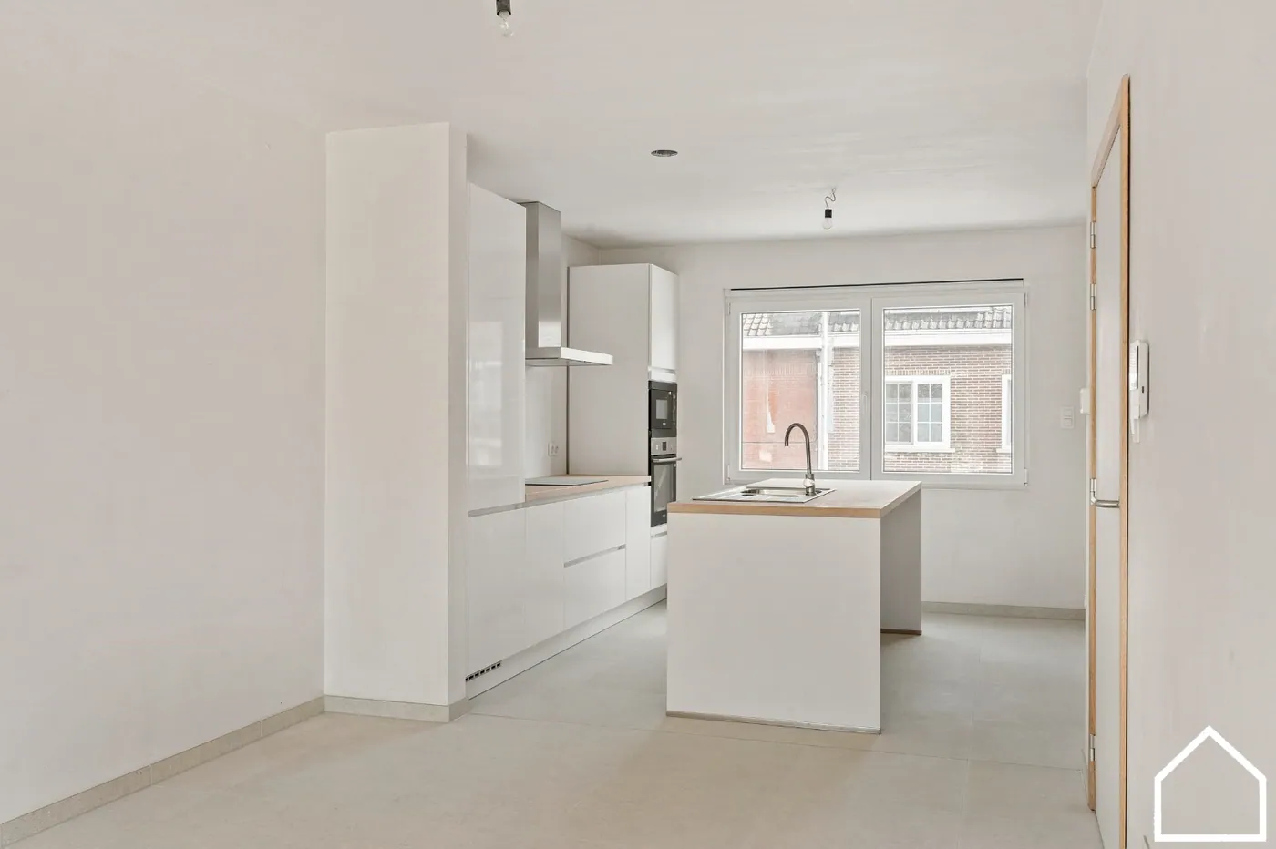 GLV: open lichtrijke leefruimte met keuken en kookeiland, vaatwas, frigo, inductiekookplaat, microgolfoven en heteluchtoven - berging - terras