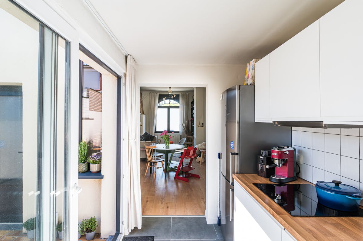 Mobiscore: 8,9/10EPC-score: A – energiezuinig wonenGezellig huis dicht bij Gent centrum. Het huis heeft 3 slaapkamers, zolder + kelder, terras en werd in 2022 gerenoveerd tot een EPC A-label. GelijkvloersJe komt binnen via de hal die naar de leefruimte en open keuken gaat. Via een schuifraam heb je toegang tot het terras. Er is een gastentoilet en wasberging met hoogrendementsketel (Vaillant).1e verdiepingOp de 1e verdieping bevindt zich de 1e slaapkamer en de badkamer. De badkamer heeft een inloopdouche, bad en dubbele wastafel. 2e verdiepingOp de 2e verdieping bevinden zich nog 2 grote slaapkamers. Vanop de hal heb je ook toegang tot de zolder.ExtraExtra: een kelder en een opslagplaats voor fietsen, bbq of werkmateriaal. De woning heeft een hemelwaterput van 3.000L. Het EPC A-label en de zonnepanelen (9) zorgen voor een minimum aan energieverbruik. Over GentbruggeDe woning ligt vlak aan de tramhalte ‘Moscou’ die vlot naar Gent Centrum gaat. Je auto parkeer je makkelijk in de straat of gratis op de publieke parking aan de tramhalte. Het huis ligt dichtbij op- en afrittencomplex Gentbrugge (R4/E17/N9). Supermarkten, scholen, winkels en eetgelegenheden zijn bereikbaar te voet en het historische centrum van Gent lig op fietsafstand. Troeven:* 3 slaapkamers* Gerenoveerd - 2022* TOP omgeving* EPC A, elektriciteit conform* Veel opslagruimte* Instapklaar, vrij op 1/10De algemene voorwaarden van Dewaele DIY kunt u steeds raadplegen via dewaele.com.Bestuursmaatregelen in het maatregelenregister: in aanvraag