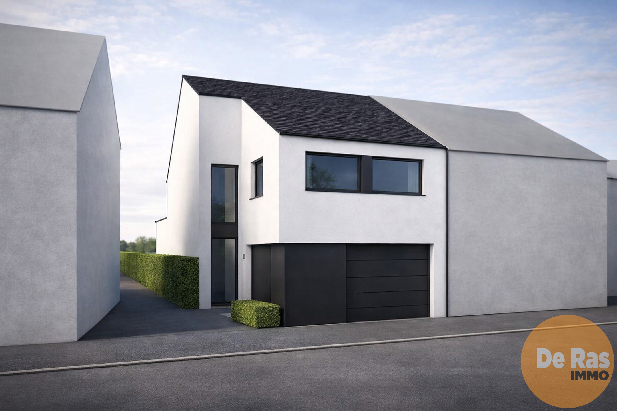 Het volume moet aansluiten zoals de bestaande woning rechts, dus zal er ook met een zadeldak moeten gewerkt worden.