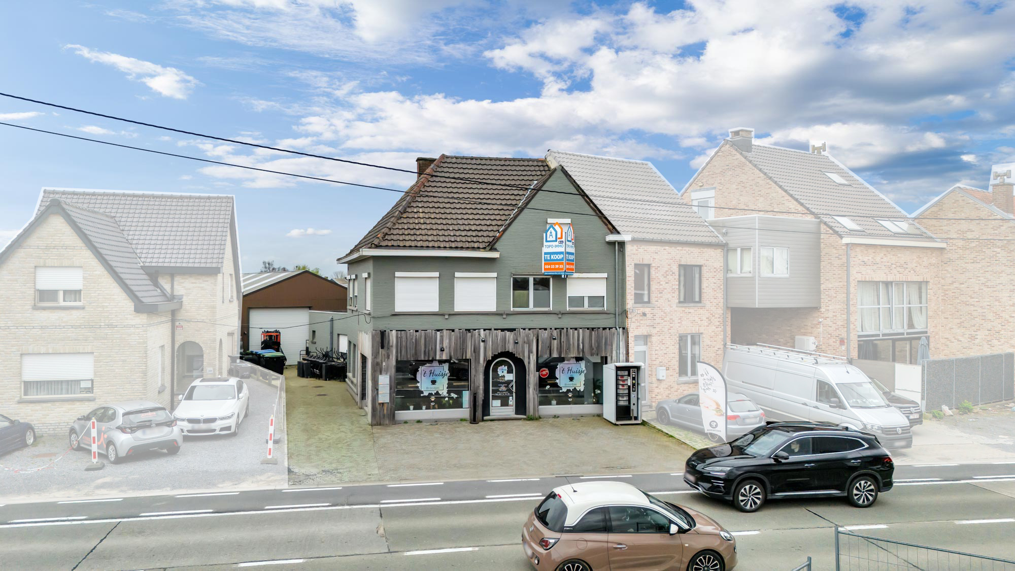 Voor meer info of een bezoek, bel 054 69 39 34 - Op een strategische topligging in Denderleeuw bevindt zich deze interessante opbrengsteigendom met onmiddellijk rendement en sterke toekomstmogelijkheden. Dankzij de ligging langs een drukke verbindingsweg tussen Aalst en Ninove en de vlotte aansluiting naar de E40 (op slechts 10 minuten), geniet dit pand van een uitstekende visibiliteit en bereikbaarheid. De eigendom bestaat uit een verhuurd handelsgelijkvloers (±115 m²), momenteel uitgebaat als broodjeszaak, wat zorgt voor een directe en stabiele huuropbrengst. Boven de handelsruimte bevindt zich een appartement (+/- 90 m²) dat momenteel niet verhuurd is en omvat een living, een keuken, een slaapkamer en een badkamer. Dit appartement dient gerenoveerd te worden, wat aanzienlijke meerwaarde- en optimalisatiemogelijkheden biedt (huurprijs / opsplitsing / eigen gebruik). Achterliggend bevindt zich een ruime loods van circa 285 m², bereikbaar via een aparte oprit. Deze werd vernieuwd in 2006 en beschikt over een automatische poort (hoogte ±3,48 m) en een polybetonvloer, ideaal voor opslag of verhuur aan zelfstandigen. Deze zal vrij zijn bij akte. Afzonderlijke tellers voor water, gas en elektriciteit - Parkeermogelijkheid vooraan (3 wagens) - Praktische indeling van het geheel