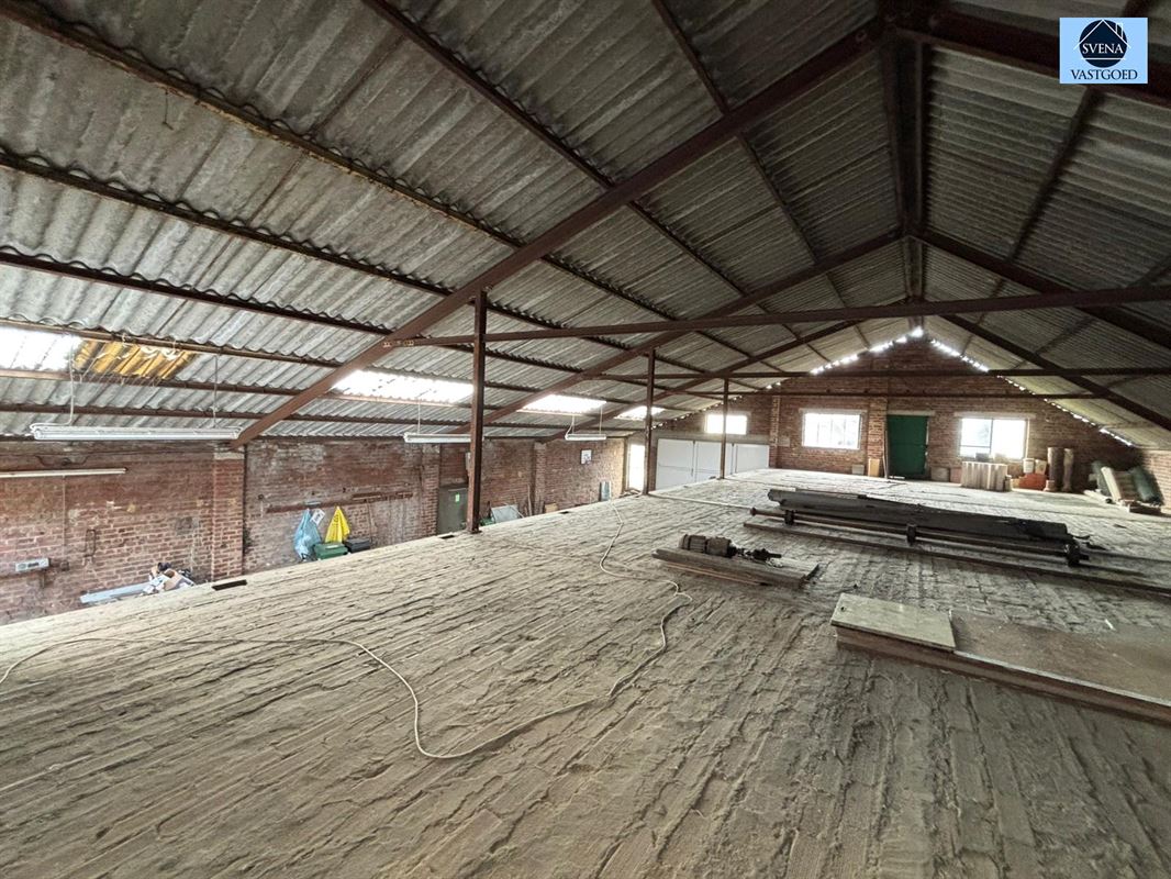 Achteraan de woning bevindt zich een ruime loods van +- 240m² ( volledig betonnen vloer ), een garage en een aangename tuin.