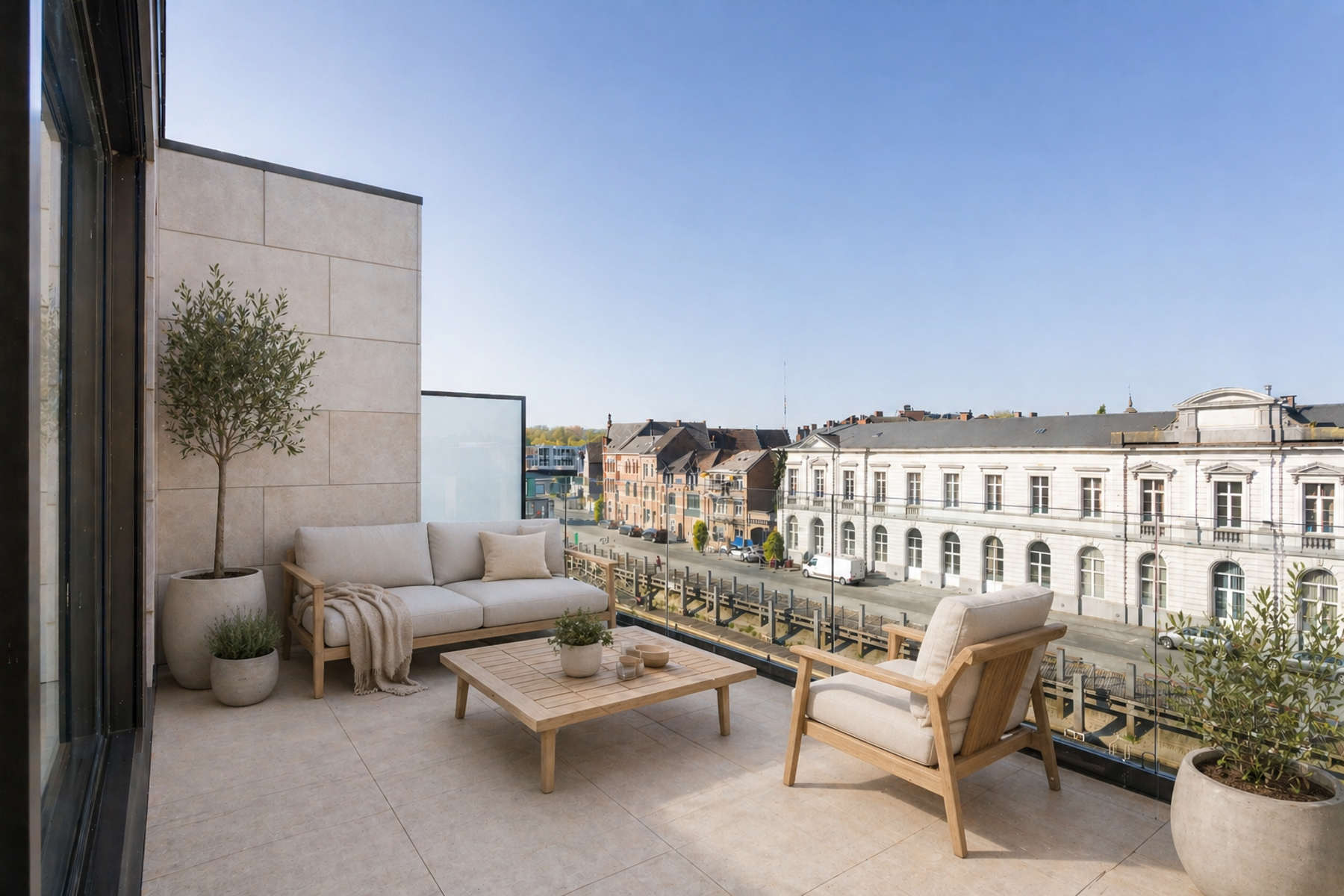 Vanop de 3e verdieping heeft U vanuit de lichtrijke slaapkamer met dressing, douchekamer, .... toegang tot het terras.