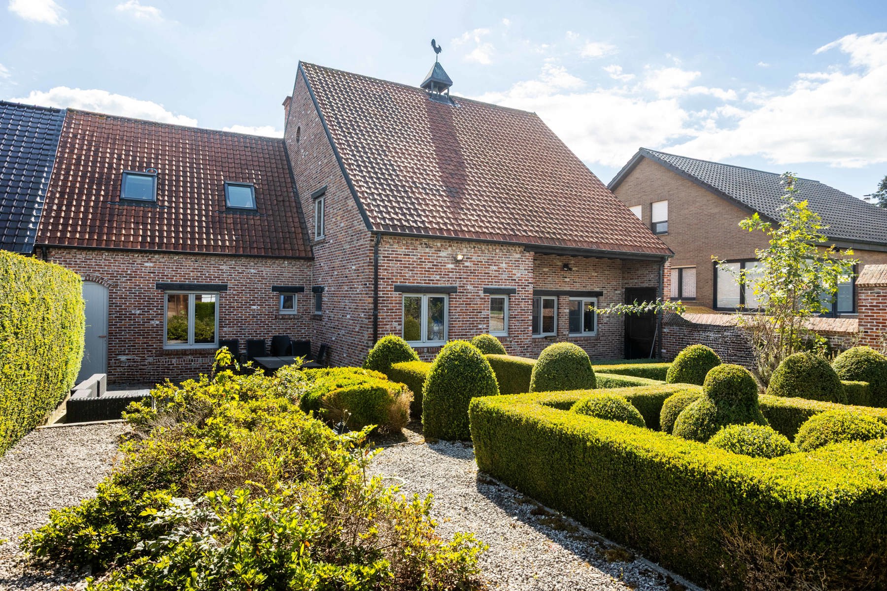 Op de verdieping geeft de ruime nachthal toegang tot een aparte douchekamer met toilet en drie volwaardige slaapkamers, waarvan één beschikt over een eigen dressing en ensuite (royale) badkamer. Via een vaste trap bereikt u de zolder, die nog tal van mogelijkheden biedt. Een praktische oprit en een comfortabele garage maken parkeren zorgeloos en gemakkelijk. De woning beschikt over een zorgvuldig aangelegde tuin die achteraan uitkomt op een afgesloten perceel, ideaal als weide voor dieren of extra buitenruimte. In de kelder bevindt zich bovendien een geklimatiseerde wijnkelder, een exclusieve troef voor de echte liefhebber of verzamelaar.