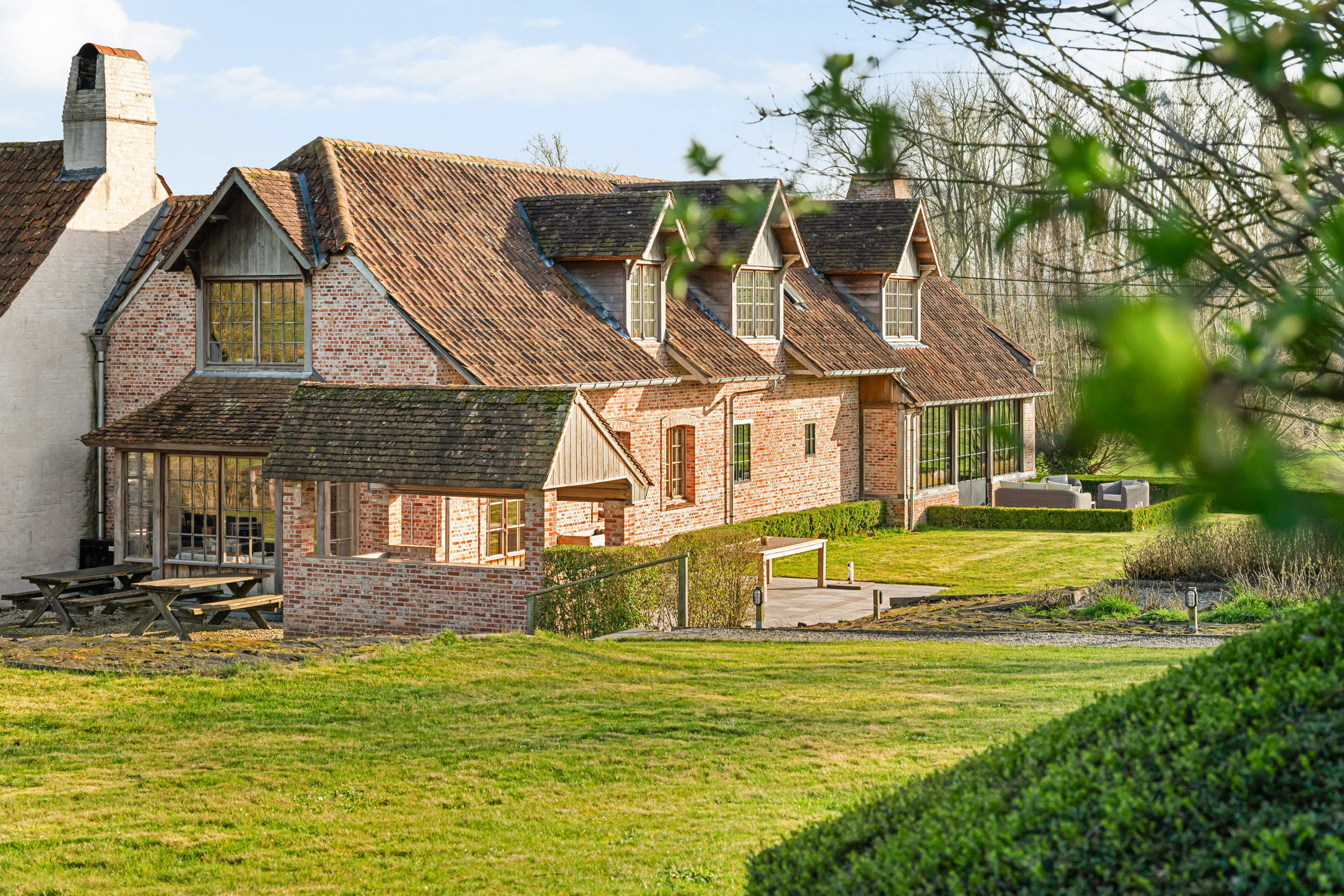 Te midden van de prachtige glooiende landschappen van de Vlaamse Ardennen bevindt zich deze uitzonderlijk charmante en volledig gerenoveerde vierkantshoeve.