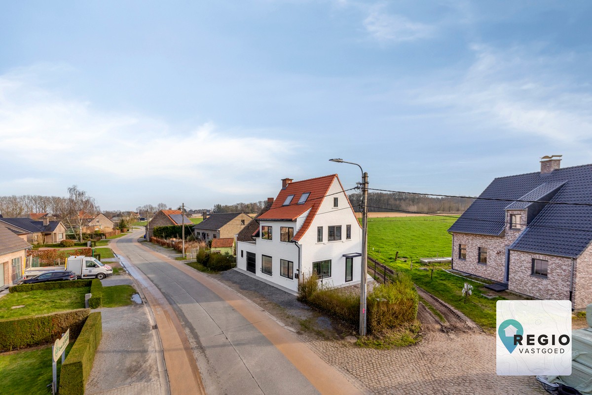 De keuken beschikt over een deur naar het zonnige terras, waar je geniet van een prachtig uitzicht op de omliggende velden. Verder is er een inpandige garage met diverse gebruiksmogelijkheden.