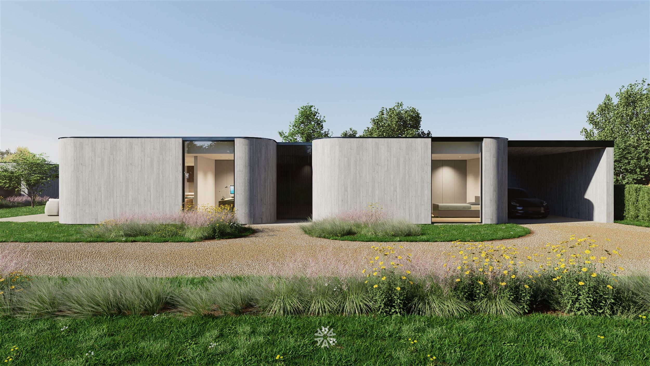 Architecturale patiovilla op een zonnig en rustig perceel in tweede bouwlijn te Merelbeke