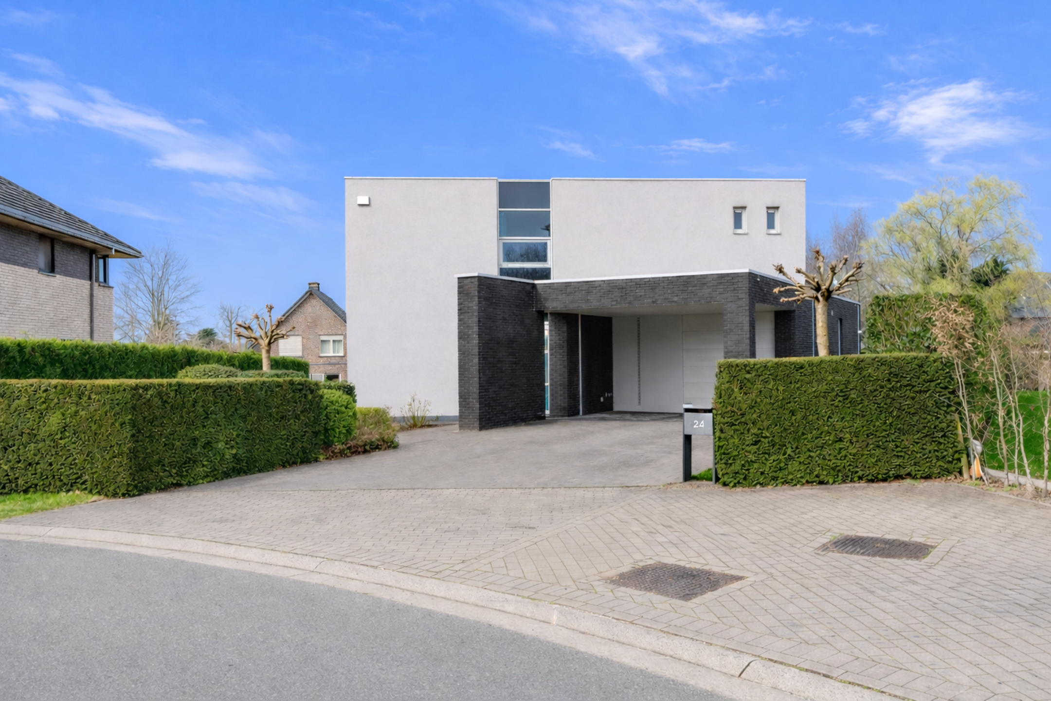 Deze instapklare woning, ontworpen door ABS Bouwteam ('2008), straalt kwaliteit en wooncomfort uit door haar hoogwaardige afwerking. Bij binnenkomst word je ontvangen in een ruime inkomhal met ingemaakte vestiairekasten en gastentoilet. Aansluitend bevindt zich een veelzijdige ruimte die perfect dienst kan doen als bureau, praktijkruimte voor een vrij beroep of hobbykamer. De lichtrijke leefruimte vormt het hart van de woning: grote raampartijen en een indrukwekkende vide zorgen voor een overvloed aan daglicht en een prachtig zicht op de tuin. De hoge plafonds creëren een gevoel van luxe en openheid. In de leefruimte zijn voorzieningen aanwezig voor het plaatsen van een gashaard en airco.