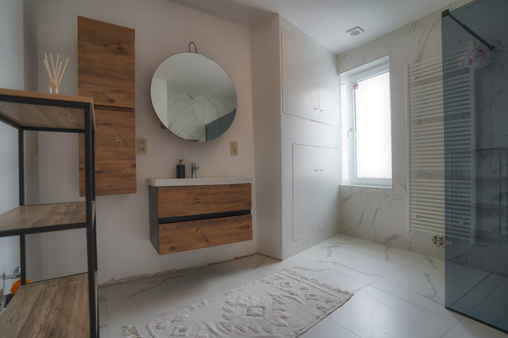 Wie kan zich inbeelden dat achter deze gevel zoveel luxe zit ? 3 douches, 1 ligbad, 3 wc’s, 2 x 2 ruime slaapkamers met, indien gewenst, aparte toegang.