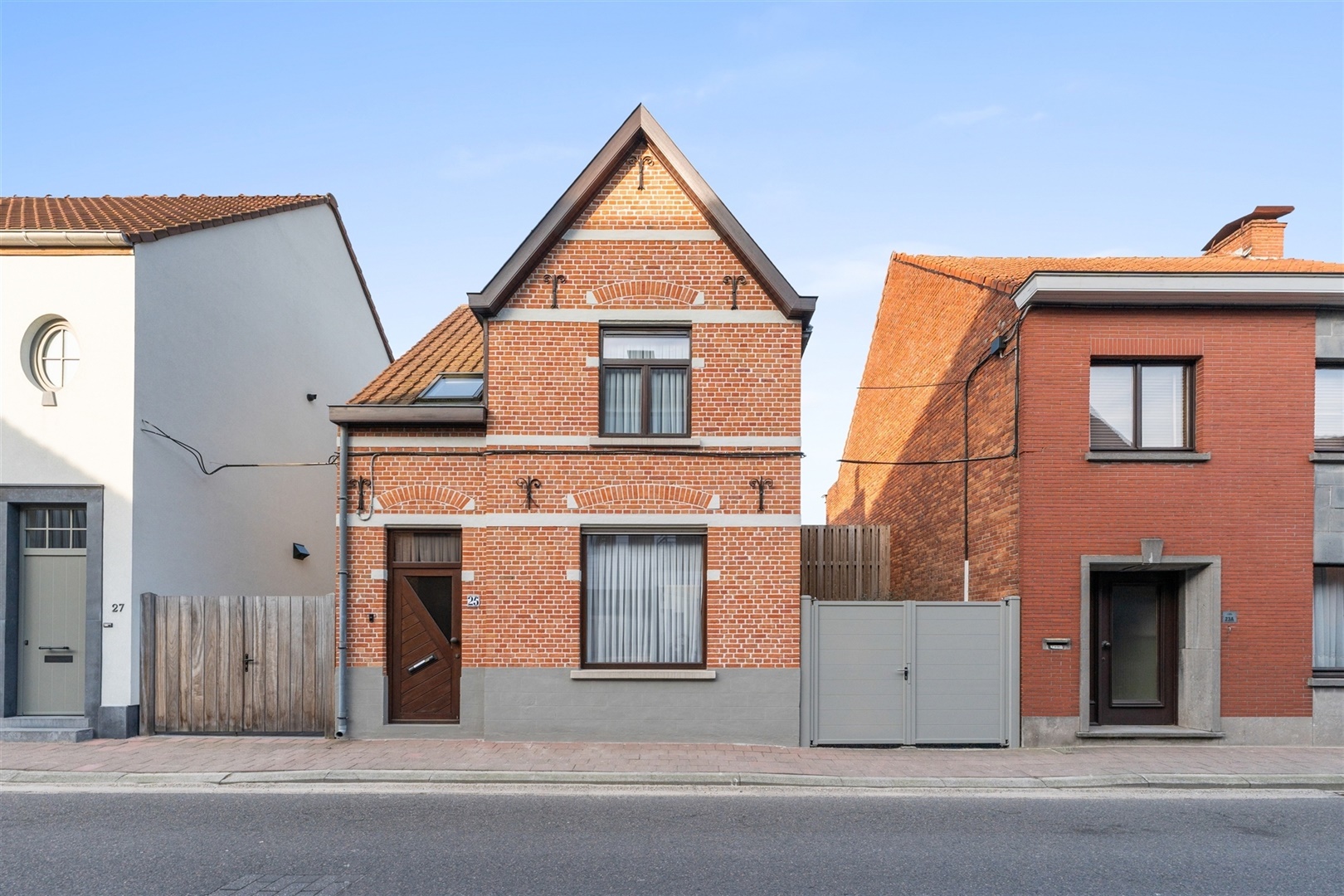 Dit vrijstaand huis heeft tal van troeven, zo is er toegangspoort aan de rechterzijde van de woning. Deze kan dienen als oprit of als doorsteek (met fietsen) naar de tuin. Aan de achterzijde treffen we een recent gebouwde garage, deze is toegankelijk via de achterliggende steeg.